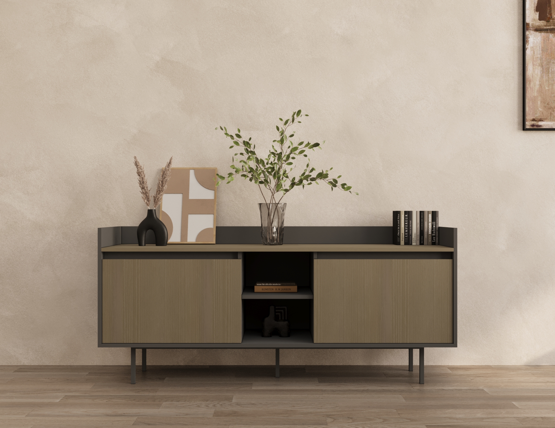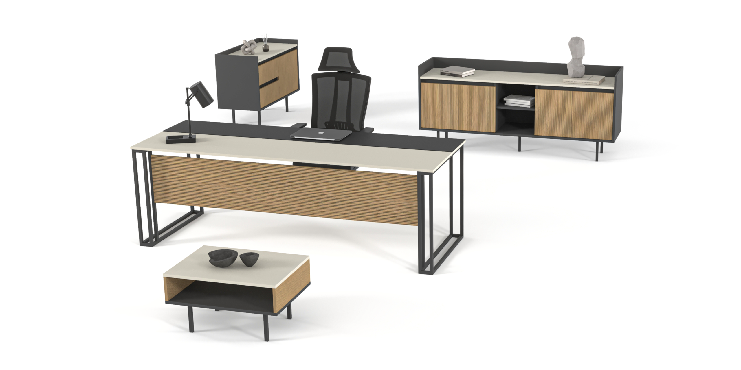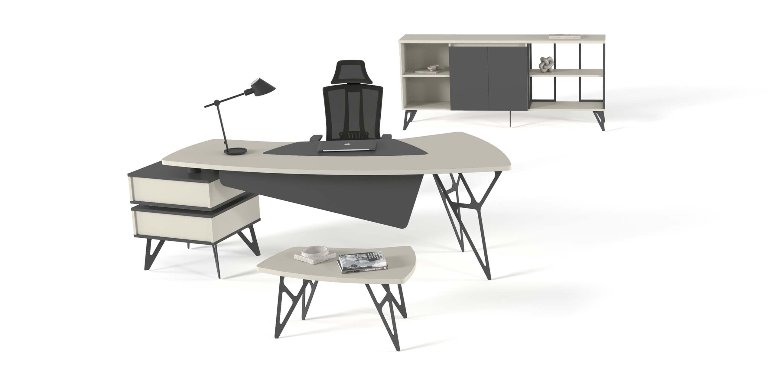 18 mm tabla kalınlığı, elektrostatik toz boyalı metal profil ayaklar, 3 mm mdf üzerine deri kaplama sümen,özel tasarım kulpsuz kapaklar ve çekmeceler, frenli menteșe ve teleskopik ray, ahșap çekmece. / 18 mm table chipboard thickness, electrostatically painted strong metal legs, 3 mm leather sheet, specially designed bookcase and drawer door,selfclosing hinge, Telescopic rail, chipboard drawer, chrome slim handle.